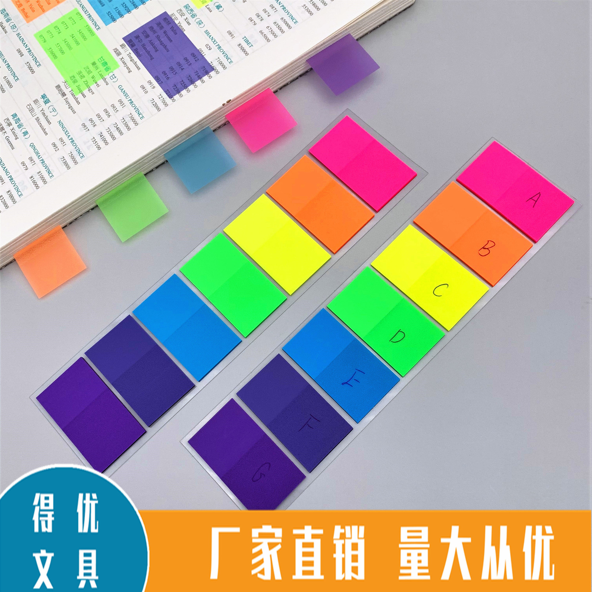 メーカーは日韓7色のpet付箋を生産しています。