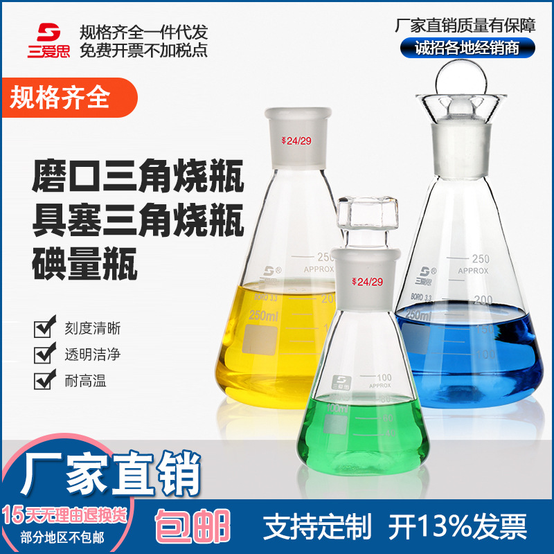 三愛思磨口三角フラスコ具ガラス栓三角フラスコ定ヨードフラスコヨードフラスコ