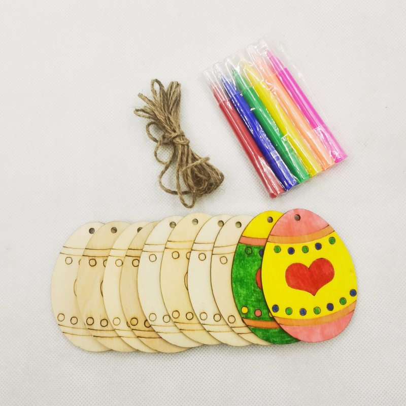 クロスボーダー専用イースター卵ストラップ子供diy手描き木製チップホーム装飾小物レザーカット