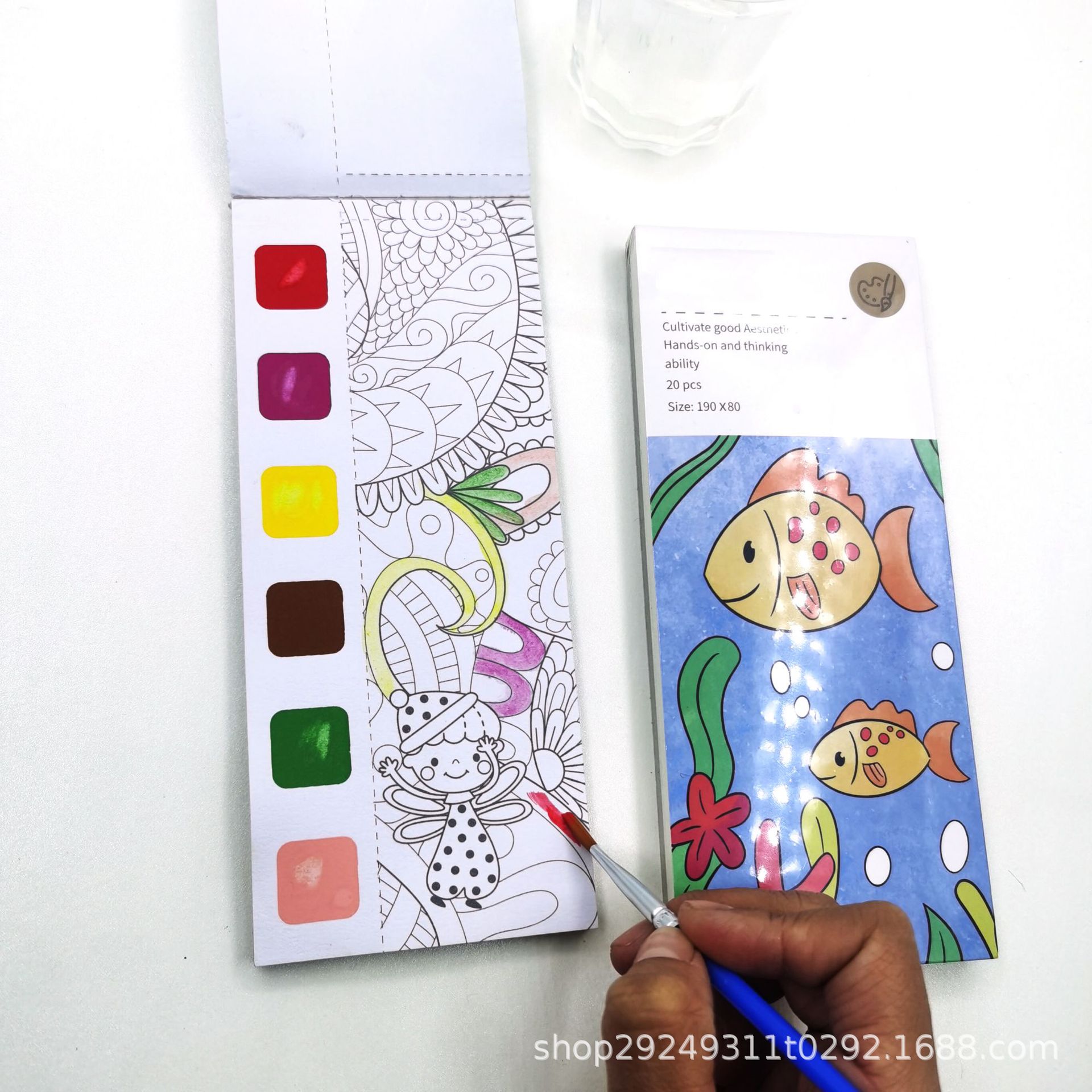子供diyの塗り絵は本を塗って絵の具を持って本の趣味の水彩画の絵の具を詰めて6色の水の粉の絵の具を描きます。