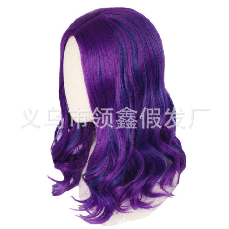 紫の混合の青い長い巻き髪はハロウィンの服装の役に適してかつらのメーカーの現物の卸売りを演じます。