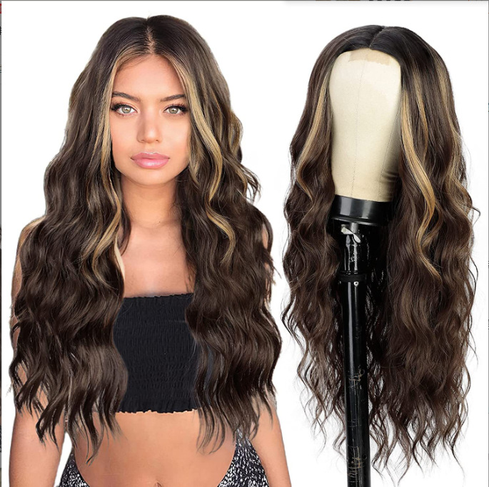 クロスボーダーかつら欧米ロングカール氷リボンかつら女性ヘッドバンドwigs化学繊維かつらカバー