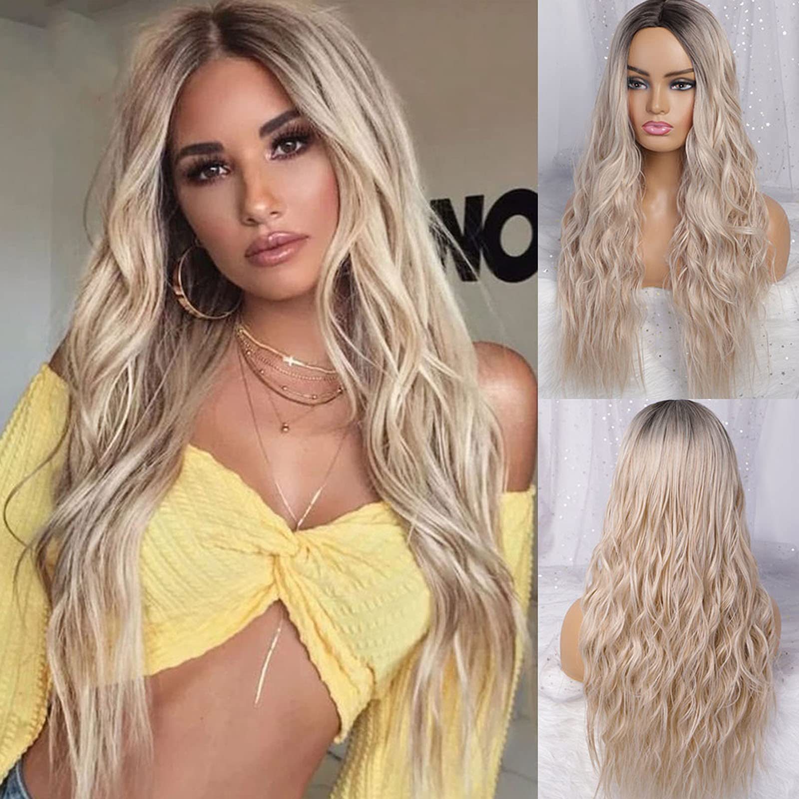 ロングヘアのかつらの女性の中で前髪のふわふわした雰囲気の女性のかつらの外国貿易の欧米の漂染の金色の長い髪
