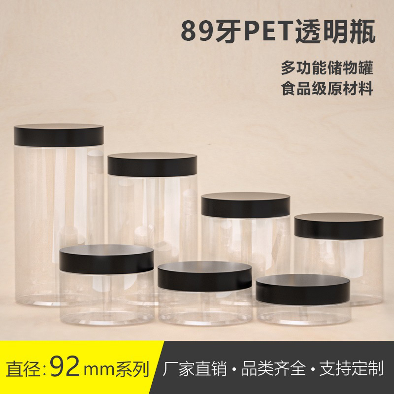 スポットpet透明プラスチック広口瓶89歯1000ml花茶ビスケット食品包装シール缶黒蓋付き