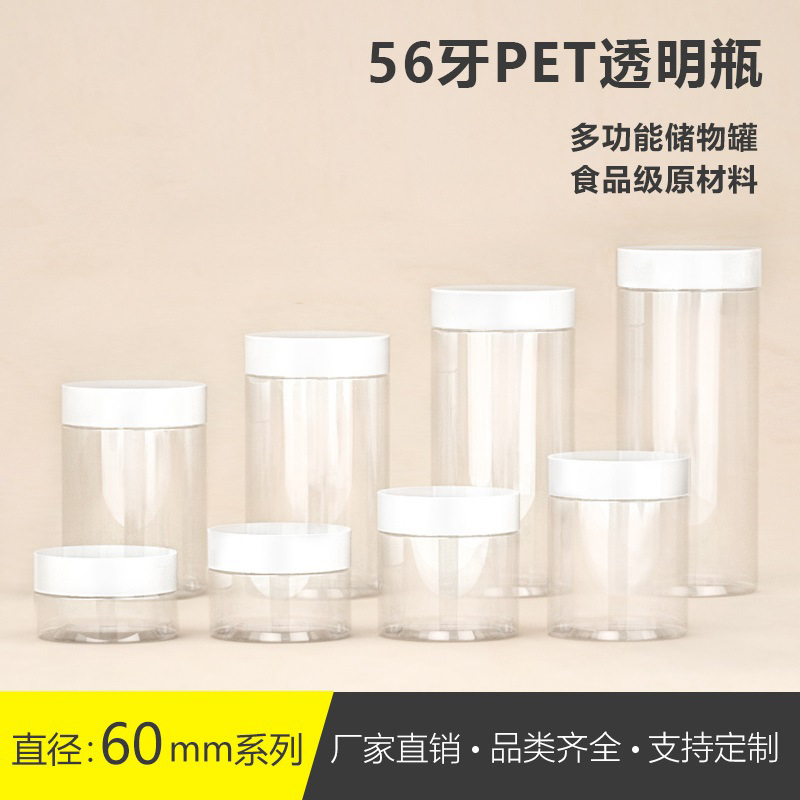 Pet透明プラスチック広口瓶56歯密封缶食品包装缶クリーム瓶白蓋メーカー現物卸売り