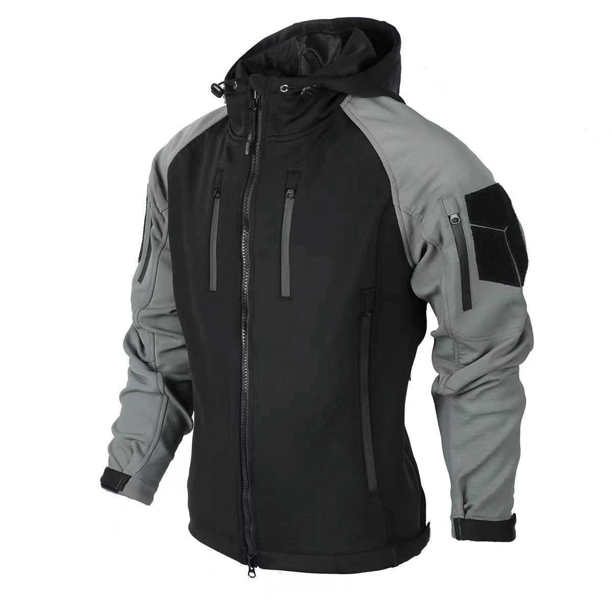 黒灰強襲ソフトシェル服秋冬ベルベット突撃服多ポケット耐摩耗性登山服保温訓練服