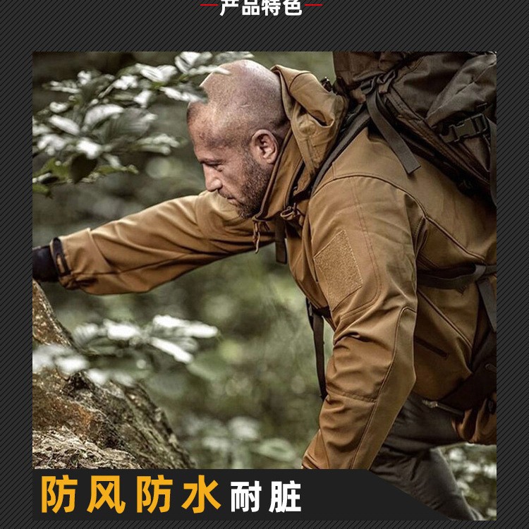 クロスボーダー冬ベルベットサメ皮スーツ男性防水保温登山服コート多ポケット耐摩耗トレーニング服