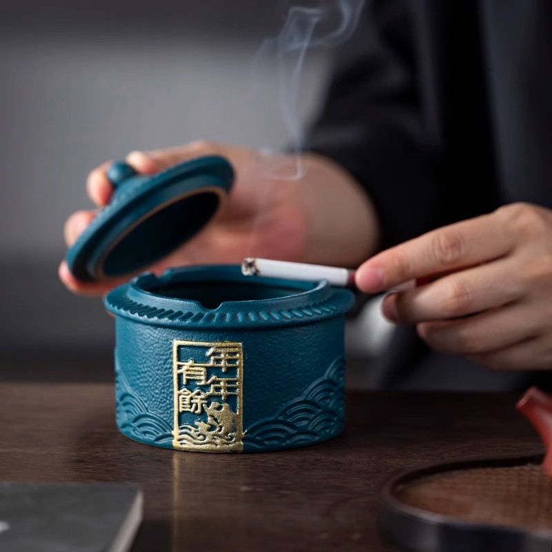灰皿防風帯蓋付き中国式陶磁器創意リビング家庭用オフィステーブル高級贅沢灰皿卸売り