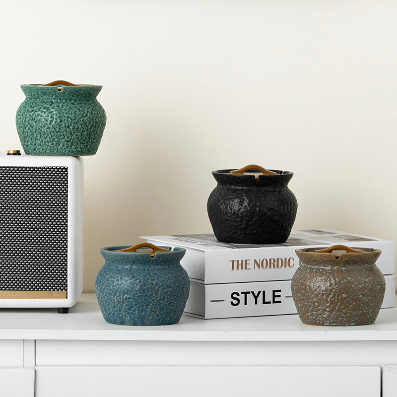 粗い陶器クリエイティブ灰皿蓋付きホームリビングルームティーテーブルオフィスデスクトップ装飾品灰皿抗煙臭シンプル