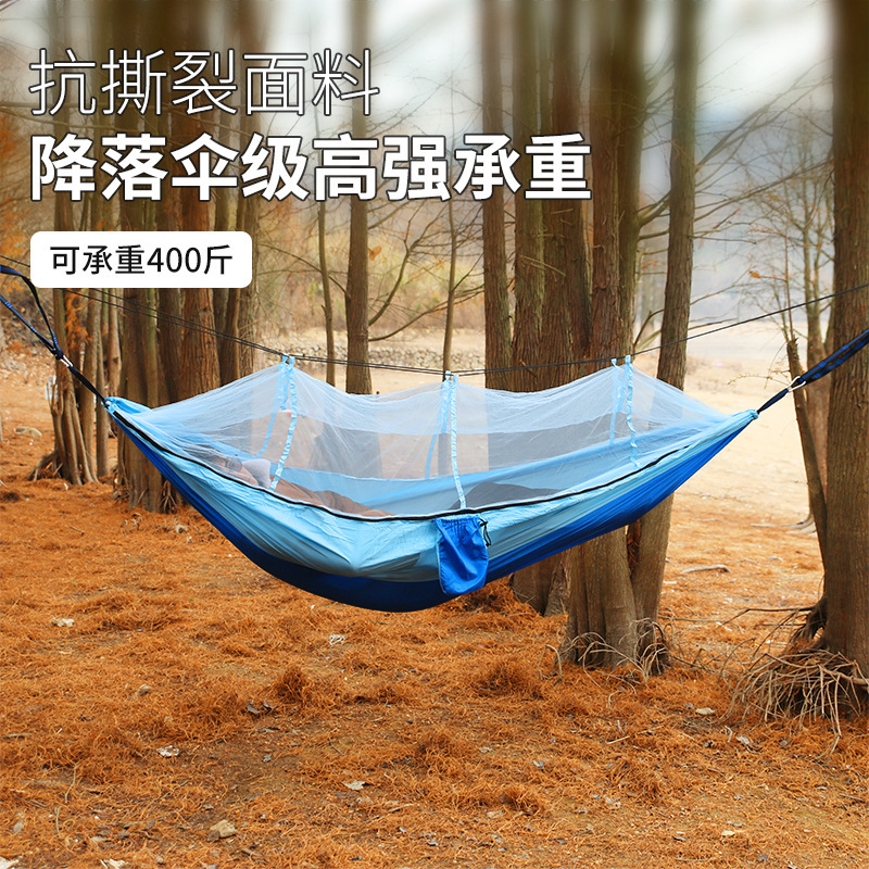 戸外キャンプハンモック携帯シングル二人蚊帳付きハンモック防蚊虫キャンプ網糸蚊帳吊り