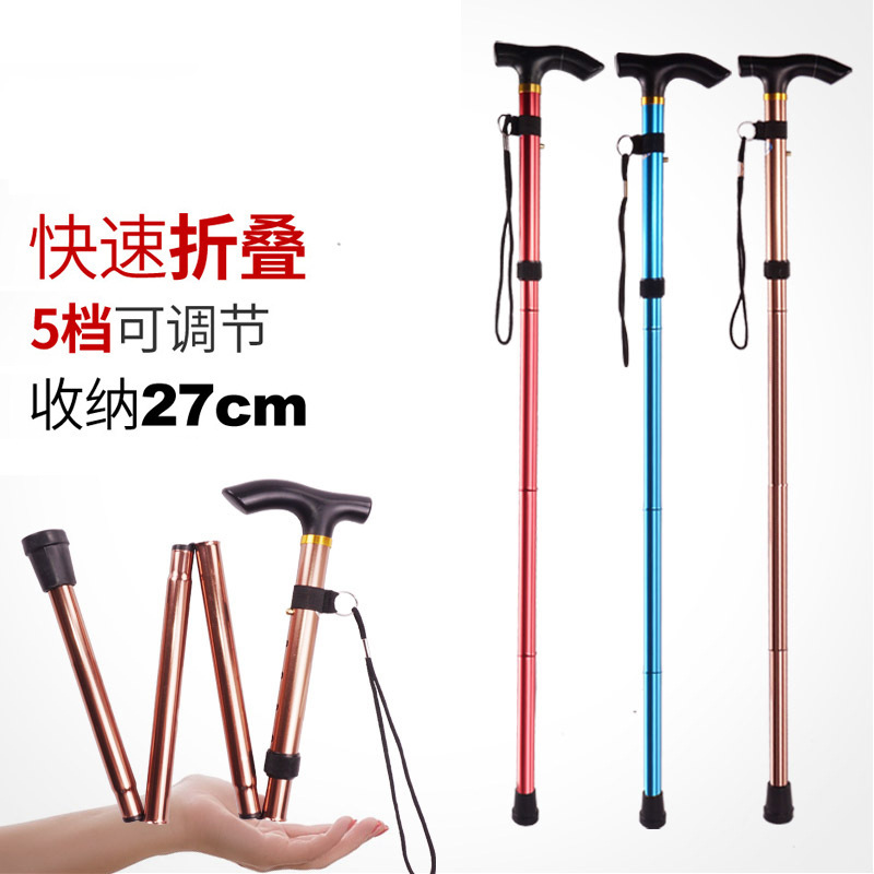 工場卸売アルミ合金4セクション折りたたみステッキ伸縮登山杖滑り止めステッキ老人松葉杖キャンプ用ステッキ