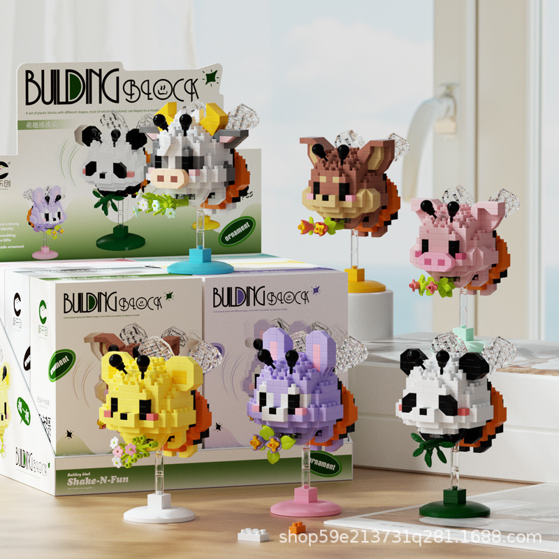 国産積み木、小粒子組み立て積み木、動物園パーティー漫画、かわいい屋台飾り、子供用知育玩具