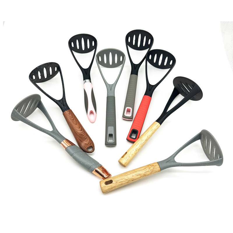 木製ハンドルプラスチックナイロンキッチン用品ポテトプレスプラスチックハンドルポテトプレスポテトツール