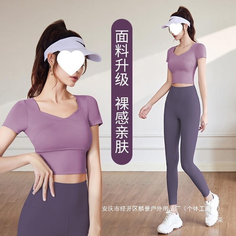 ヨガ服セット女性2024新型ネット赤速乾半袖上着ランニングトレーニング運動プラティフィットネス服