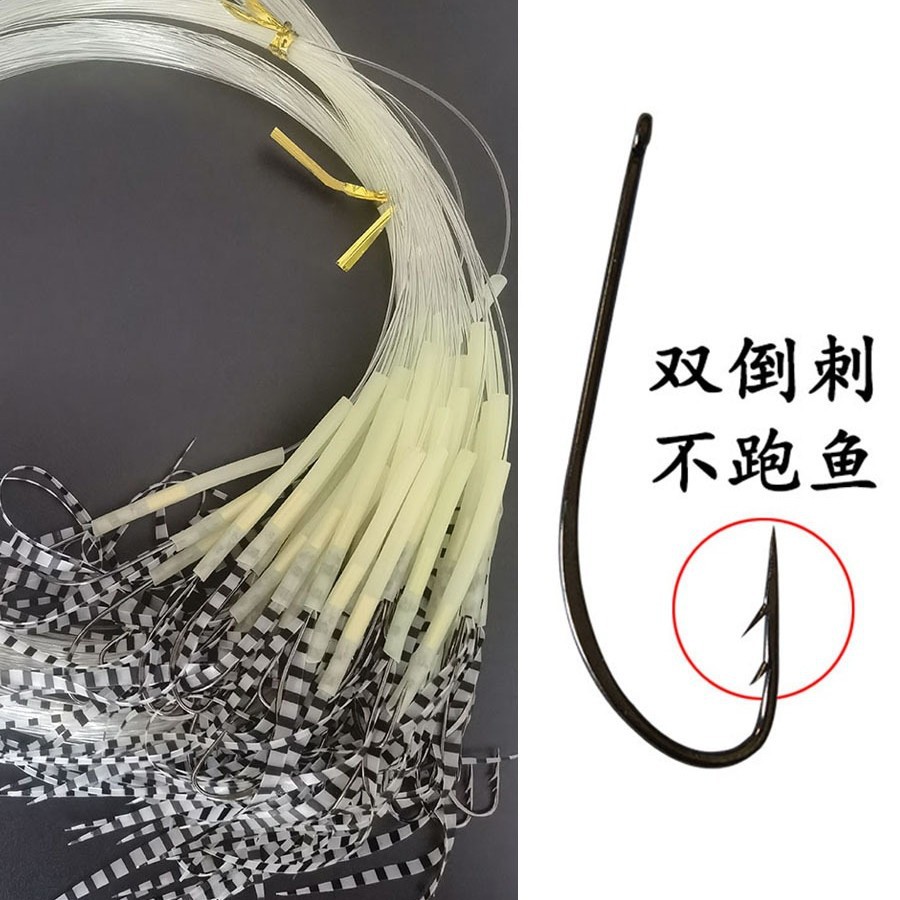 長い柄のシングルフックは釣り針を縛っています。