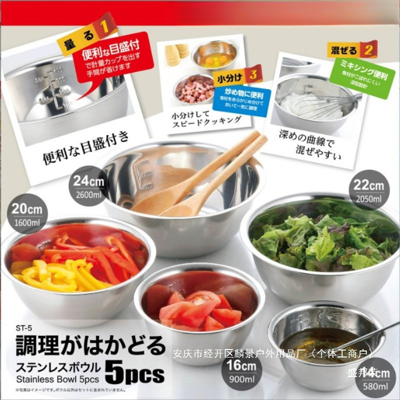 ピクニックバーベキューステンレスボウル5点セットポータブル大型スープボウルライスボウル屋外家具キッチン調理器具セット