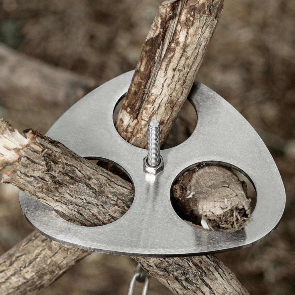 吊り鍋の木の棒の焚き火の支柱の鍋の棚の木の棚の屋外のキャンプの三脚の三角の携帯用ステンレスのつり革