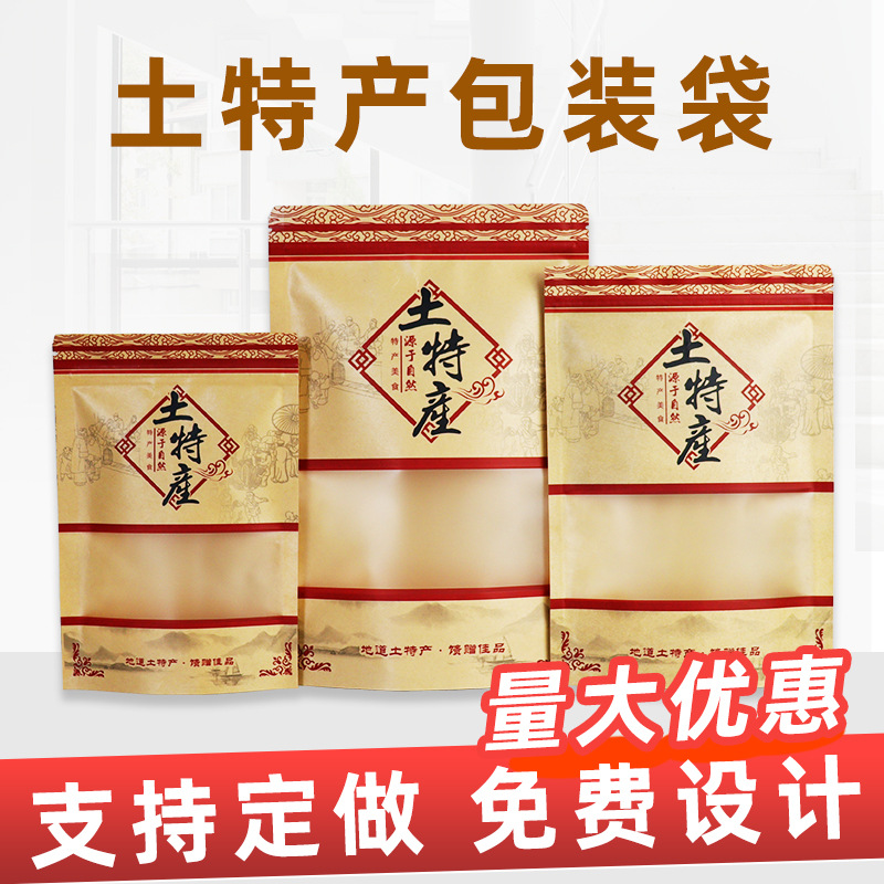 食品自立自封密封ファスナー土産木耳シイタケ通用封口開窓クラフト紙包装袋