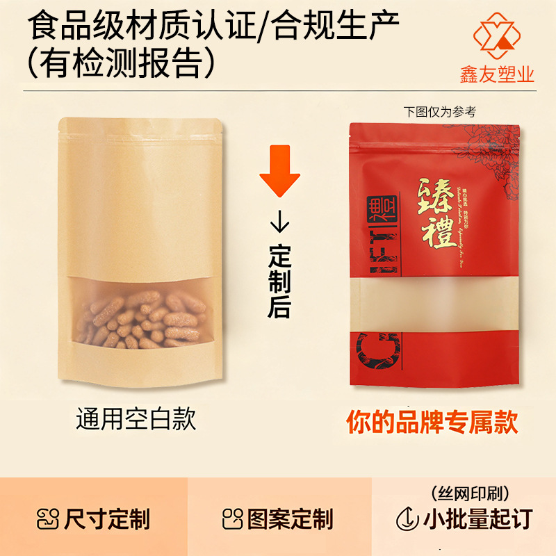 ナッツスナックオープン窓自立クラフト紙袋卸売シールジッパー自封ドライフルーツ食品包装袋カスタム