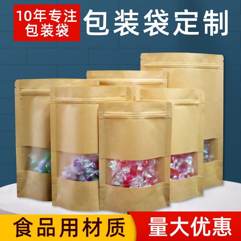 ドライフルーツ茶シールジッパーバッグ窓開けクラフト紙袋自封袋卸売りフロスト自立食品包装袋