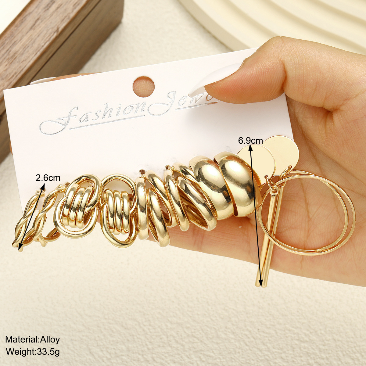 欧米の国境を越えた創造的な金色のc型イヤリング金属耳輪合金角形幾何学的イヤリングセット6点セット