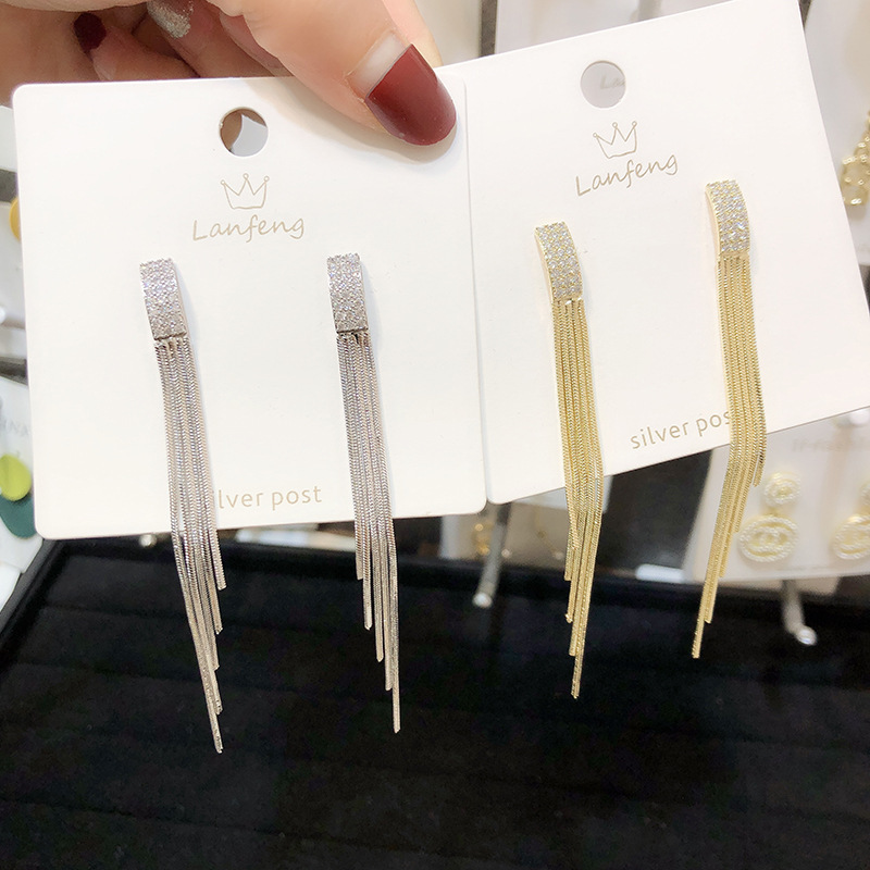 S925銀の針の小さいダイヤモンドの気質の金属のフリンジイヤリングの欧米の冷たい風の個性の百合の耳飾りのネットの赤いイヤリング