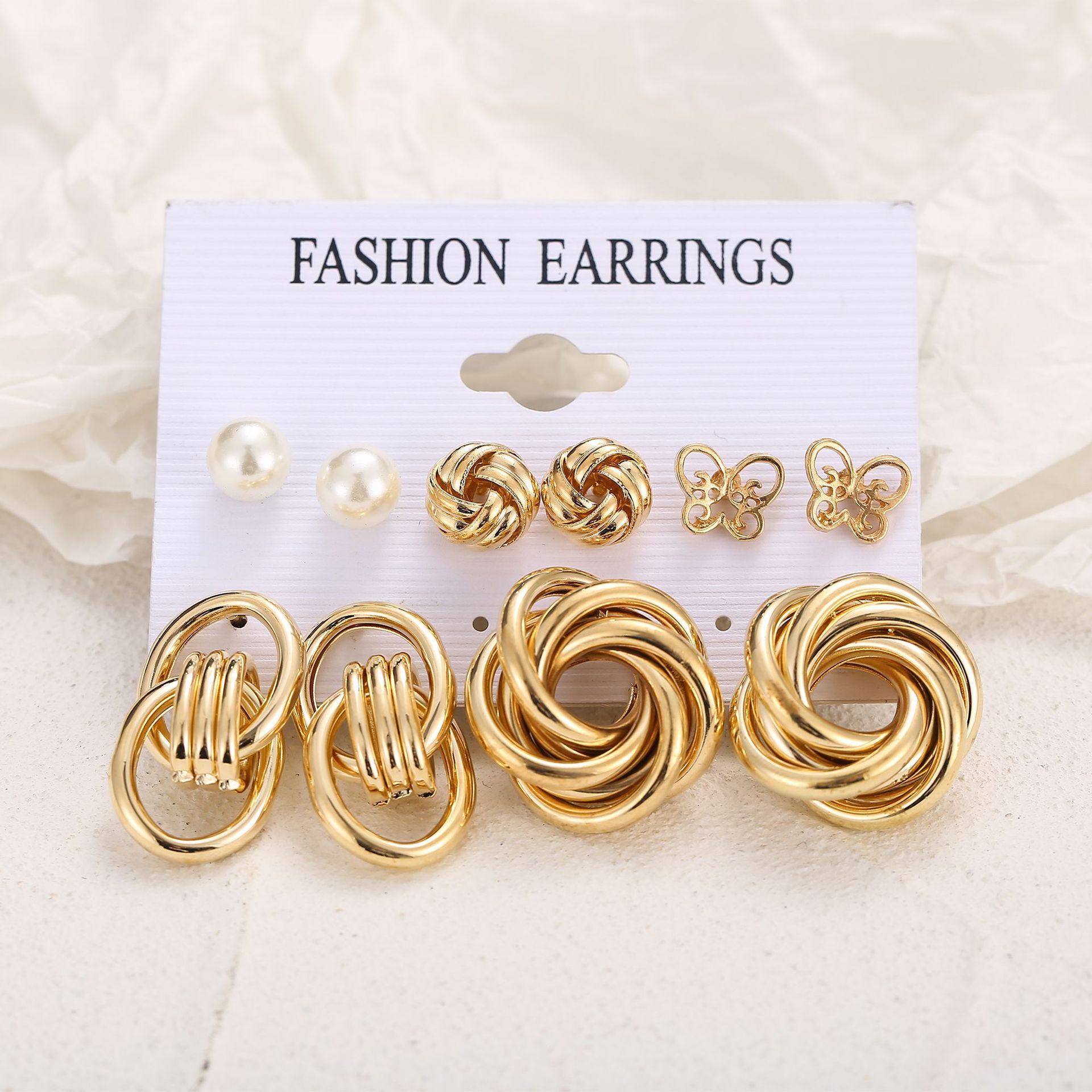 国境を越えたホットセールのクリエイティブファッションアクリル真珠合金イヤリングレトロな麻花円セットイヤリングセット