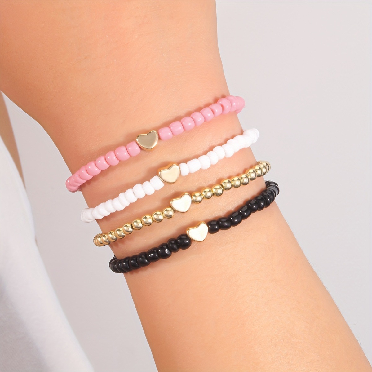 クロスボーダー夏のハンドジュエリーファッションシンプルなスタイルのラブライスビーズ弾性レディースブレスレット 4 ピースブレスレットジュエリー卸売