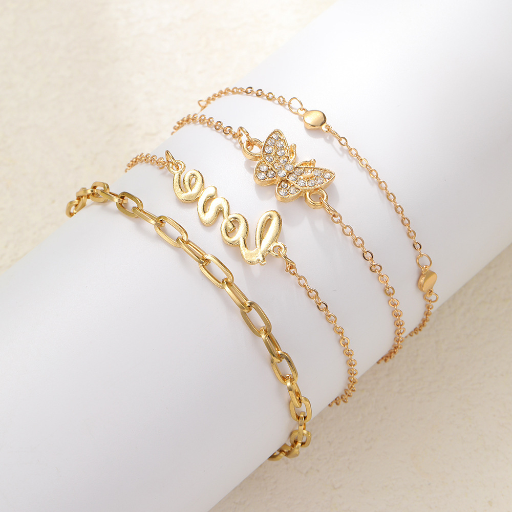 国境を越えて人気のある欧米風LOVEアルファベットに蝶の足のチェーンセットを入れる女性ファッション高級感のある足飾り