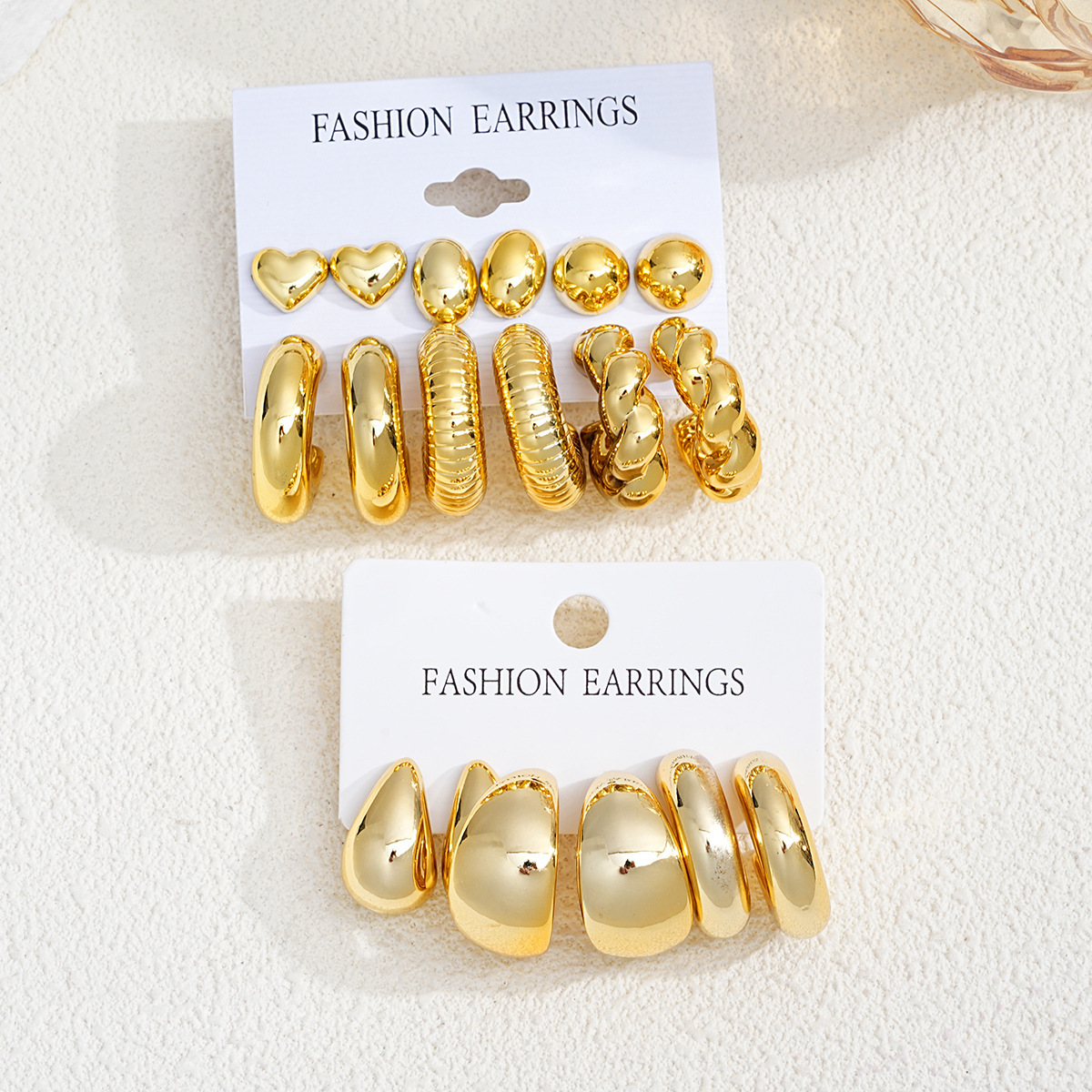 欧米の国境を越えた新型ファッション高級耳輪愛水滴いくつかの耳飾りセットCCB麻花イヤリング9セット