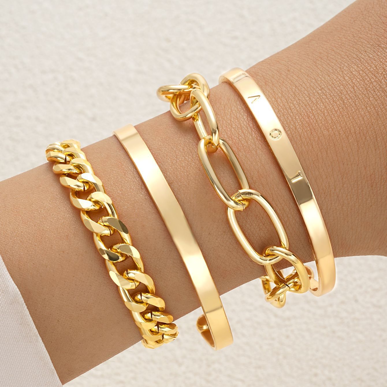 欧米の国境を越えた新型ins合金セットブレスレット4点セットパンクヒップホップクリエイティブブレスレットセット