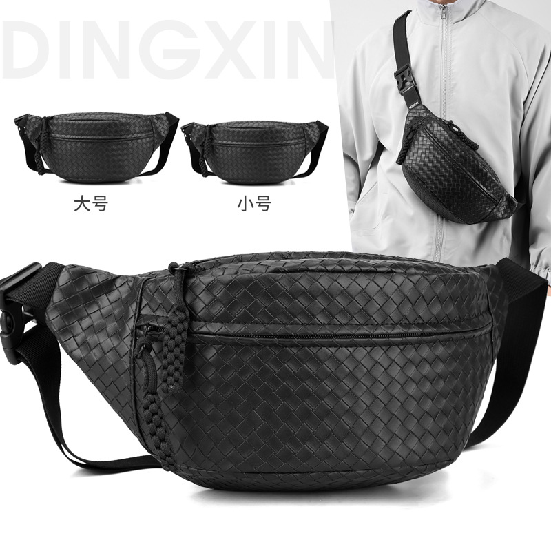 国境を越えた香港風の潮流pu斜めショルダーバッグカジュアル男性胸バッグ欧米風編み斜めショルダーバッグ黒pu胸バッグ