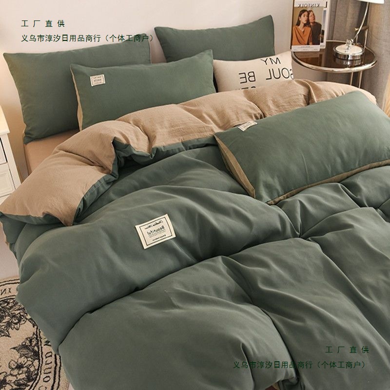 フルーツグリーン無地シーツ枕カバー寝具4点セット掛け布団カバーオールシーズンベッドシーツ掛け布団カバー3点セット