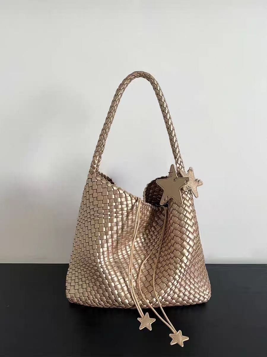 織りハンドヘルドショルダーバッグレディーススモールバージョンスモールバッグデザイン通勤トートバッグガンガンシャンパンカラー同スタイル秋冬