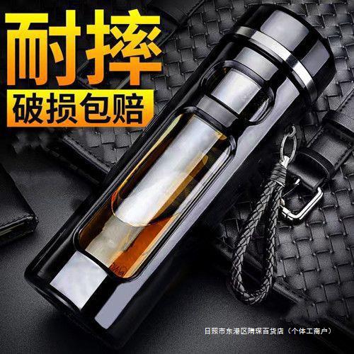 落下防止大容量SC水二重層ガラス防爆シンプルポータブルカップメンズ茶水分離ティーカップ