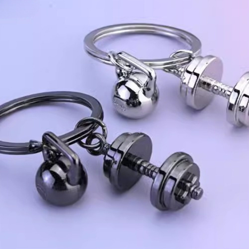 キーホルダーペンダント、小さなペンダント、カスタムクラブメンズイベントギフト、フィットネスダンベルメタルキーホルダー