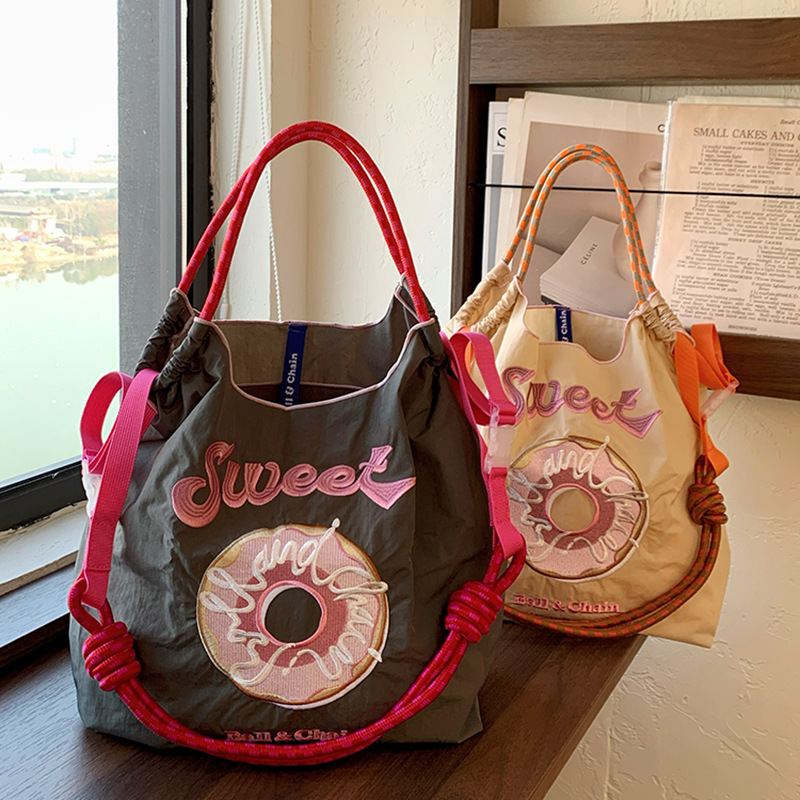 Gao Yuanyuanと同じスタイルのボールエコバッグ、ファッショナブルなショルダークロスボディバッグ、ショッピングバッグ、ドーナツニッチハの刺繍入り