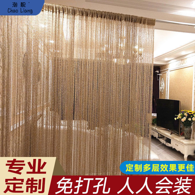 カーテンリビングルームシャンパンカラー玄関装飾パーティションカーテン暗号化ラインカーテンディープドアカーテンシルバーシルク韓国タッセルカーテン