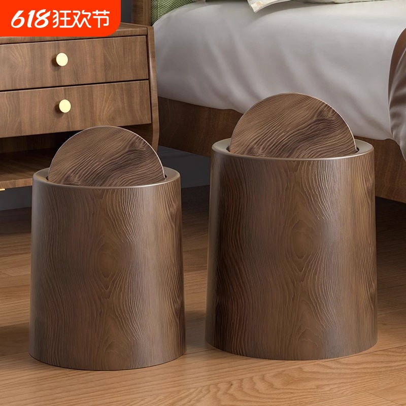 蓋付きキッチンバケツ新しい中国風のバスルームオフィスレトロな寝室リビングルーム衛生木目調ゴミ箱家庭用