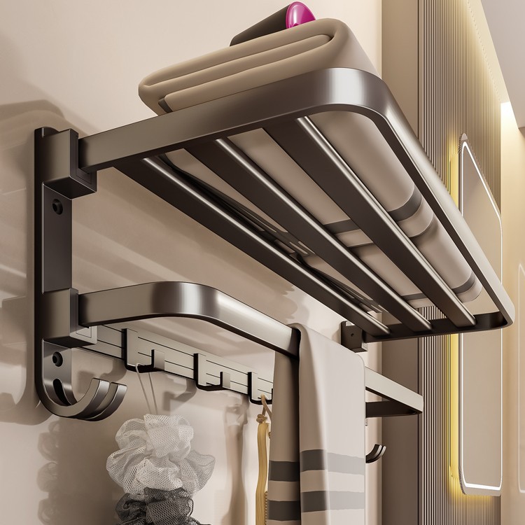 一体型バスルームタオルラック、穴なしバスタオルラック、トイレスペースアルミバスルーム壁掛けバスルーム収納ラック