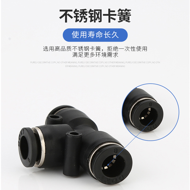 黒色プラスチック高速ガス管継手y型三方py4/6/8/10/12/14/16継手エアホース個