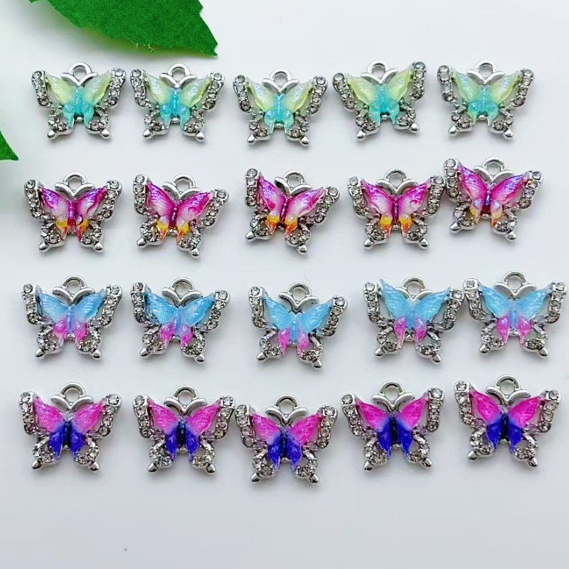 新しいフルダイヤモンドカラフルな蝶合金ペンダント diy イヤリングジュエリーネックレス手作り素材アクセサリー