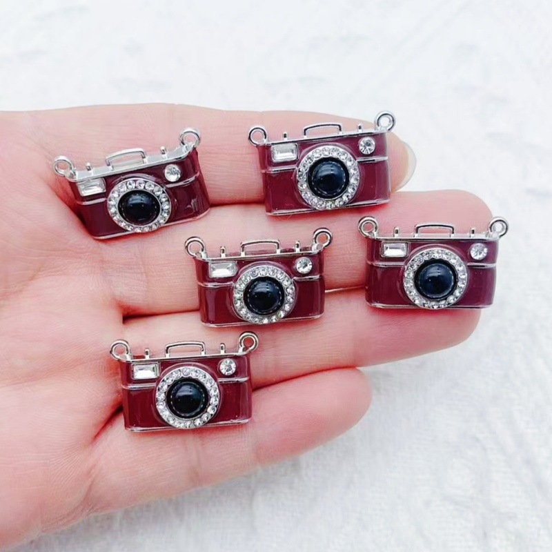 新しいレトロブラウンカメラダブルペンダントペンダント手作り diy ブレスレットネックレス首輪キーホルダージュエリー