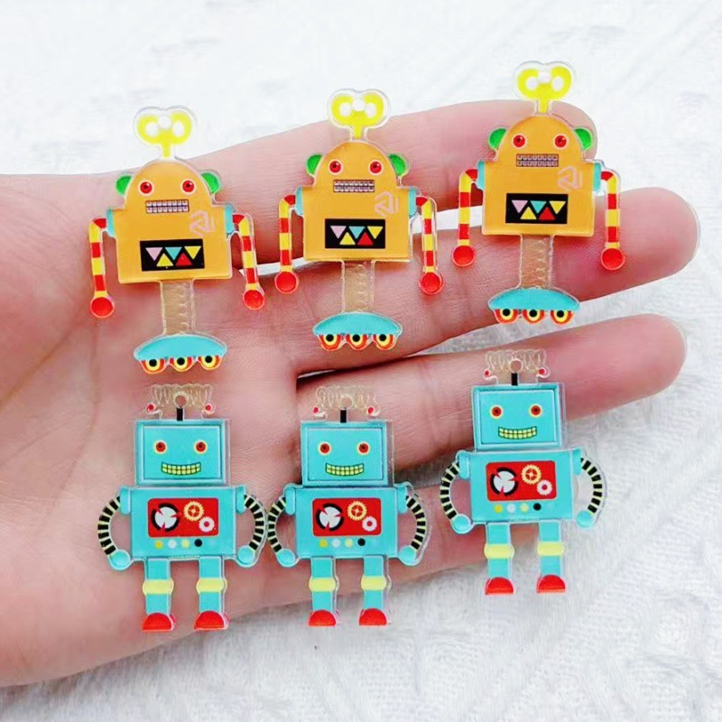 漫画時計仕掛けのロボットアクリルタグ diy ジュエリーアクセサリーかわいいアニメーションバッグ装飾キーペンダント
