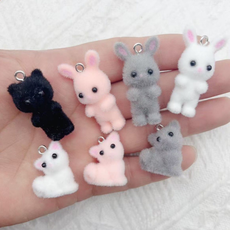 クロスボーダー樹脂植毛立体漫画かわいいウサギのペンダント DIY キーホルダーバッグジュエリー装飾ペンダント