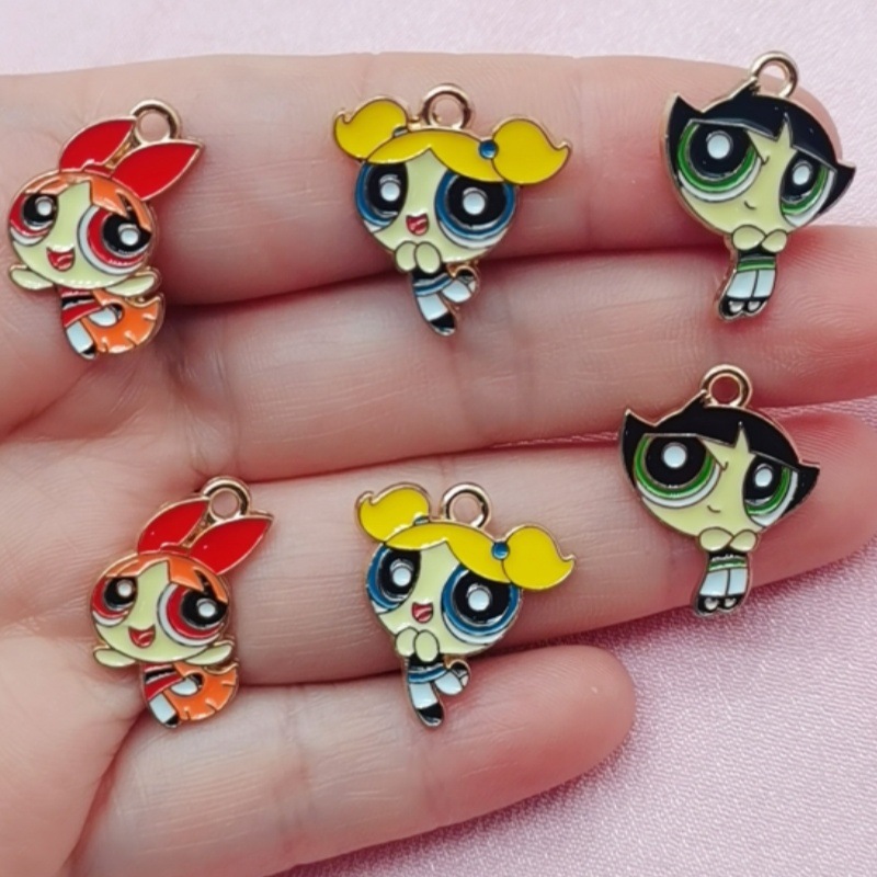 パワーパフガールズ合金オイルドリップ DIY ジュエリーアクセサリー漫画かわいいアニメハンドロープネックレスペンダントペンダント