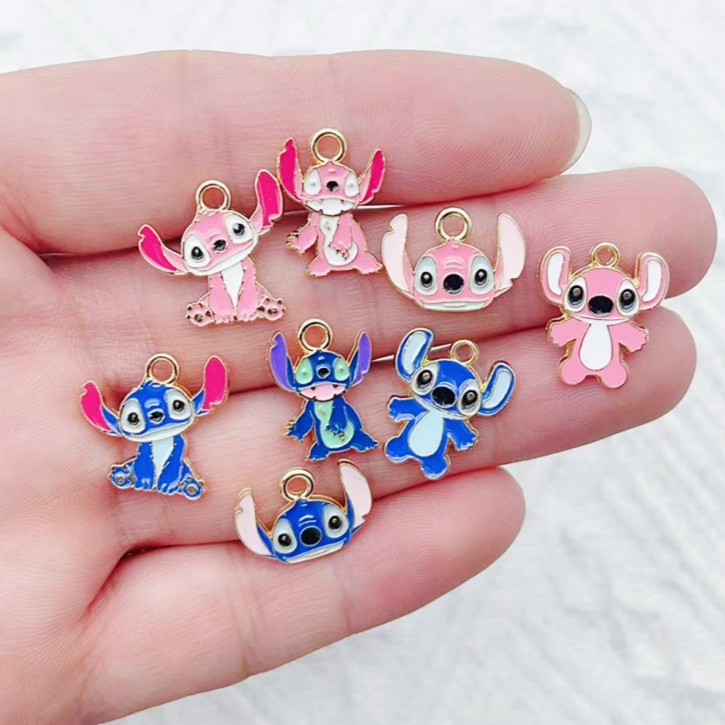 漫画かわいいステッチ DIY オイルドリップジュエリーアクセサリー合金ペンダントキーホルダーイヤリングネックレスペンダント