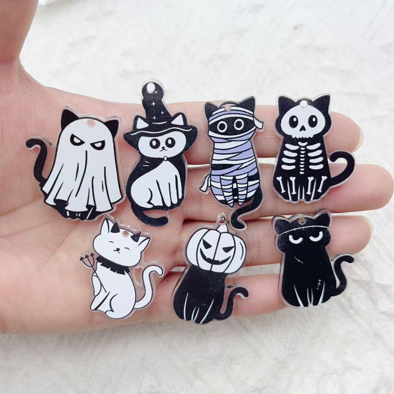 ハロウィン漫画動物キャラクター光沢のあるアクリルペンダントジュエリーメイキング DIY キーホルダーイヤリングアクセサリー
