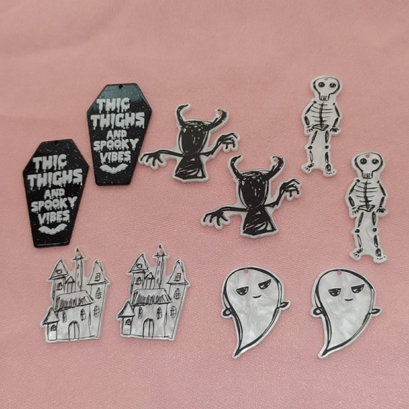 クロスボーダー面白いハロウィンホラー幽霊墓石パターンアクリルプリントパーソナライズされたパンクダークスタイルイヤリング
