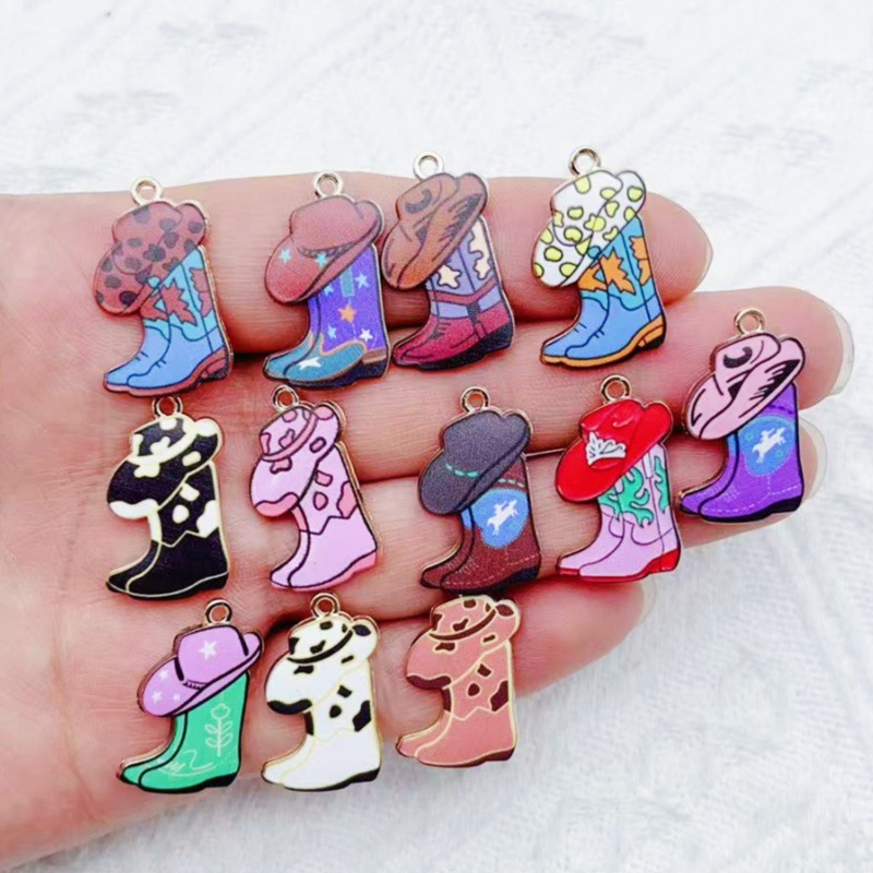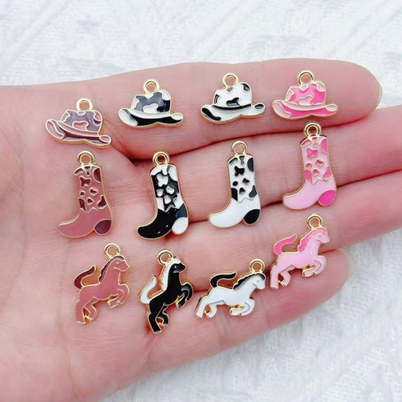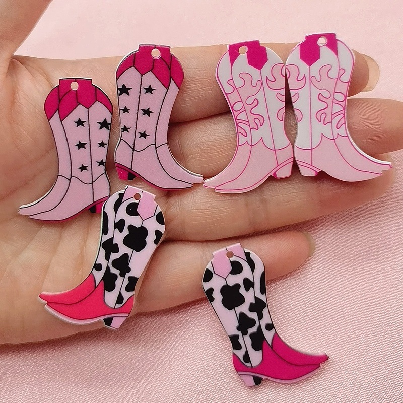 クロスボーダーウエスタンスタイルピンクヒョウ柄スタートーテムウエスタンカウボーイブーツペンダントdiyジュエリーアクセサリーペンダント